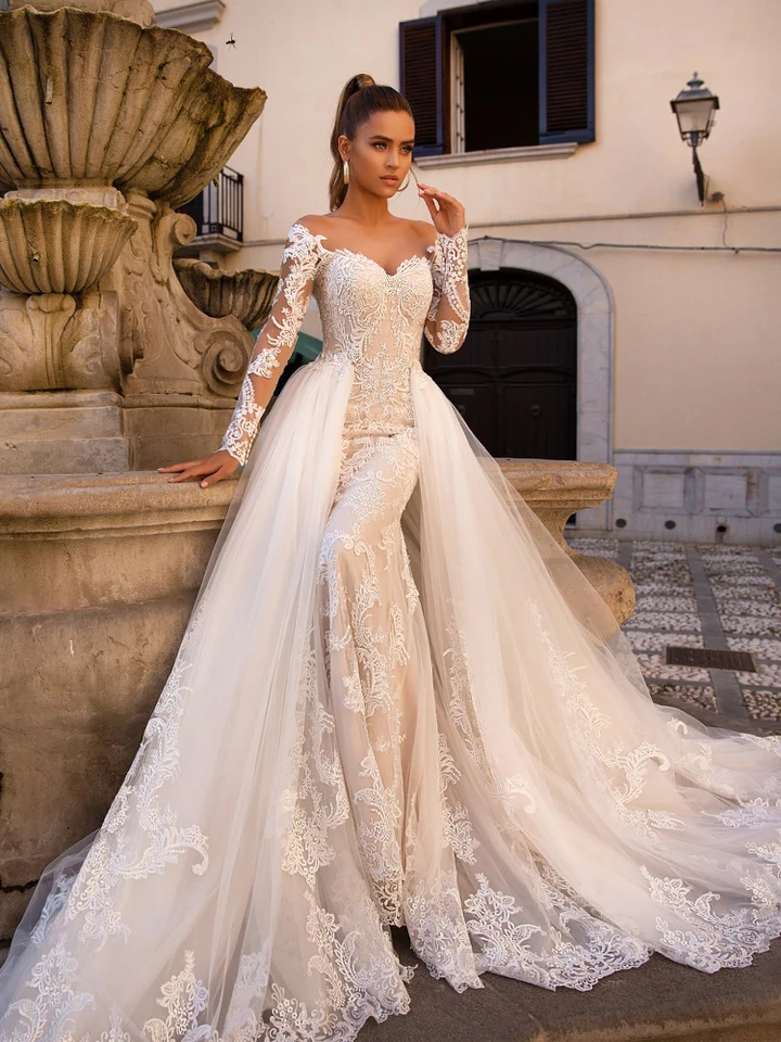 Sweetheart, with long or short sleeves, high neck, low back and so on. Mermaid wedding dresses are the favorite of many brides because they complement the figure and enhance the feminine curves. Shop more products from customdresskoko on storenvy, the home of independent small businesses all over the world. Looking for fishtail wedding dress? Buy cheap trumpet wedding dresses online at veaul.com today! See more ideas about mermaid wedding dress, wedding dresses, wedding dresses lace. Cathedral bridal dress with removable lace sleeves. There are lots of types of mermaid gowns: Mermaid dresses fit tightly on the upper part of the body, further emphasizing the thin waist, and the widening bottom forms the coolest part of the dress. Dressafford.com has everything you could ever want in a dress. We offers varies style from boho style,high street style to indoor wedding boho mermaid wedding dresses lace sweetheart removable straps. Fabric is shaped to contour the body, giving you the perfect hourglass figure.for the bride that wants to look her absolute best on her wedding day, this is the dream come true. We have more mermaid wedding dresses than you'll be able to choose from.